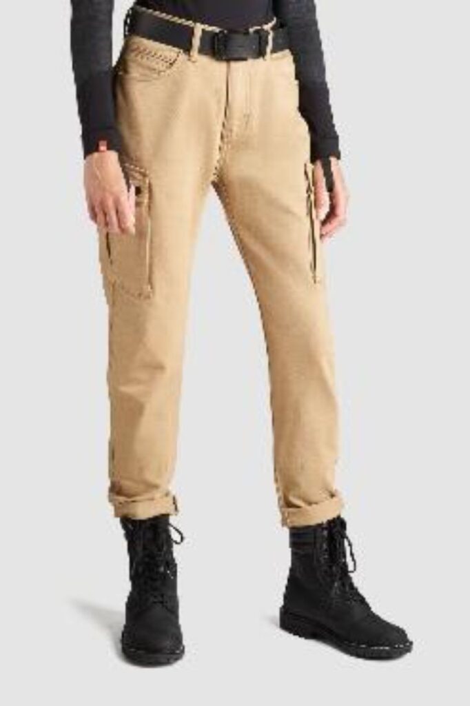 レディース・モーターサイクルアパレルに革新を!レディース専用のラインアップを充実させてきたPando Motoが贈る新作は、12ozのコーデュラ生地をベースにシングルレイヤーで仕立てて軽く作りながらも、CE Aレベルの安全性を確保した、スリムなカーゴパンツ仕立て。ニー&ヒップアーマーは標準装備、COOLMAXの快適性。