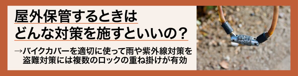 では、バイクを屋外で保管する際には、どのような点に注意すればよいのでしょうか。