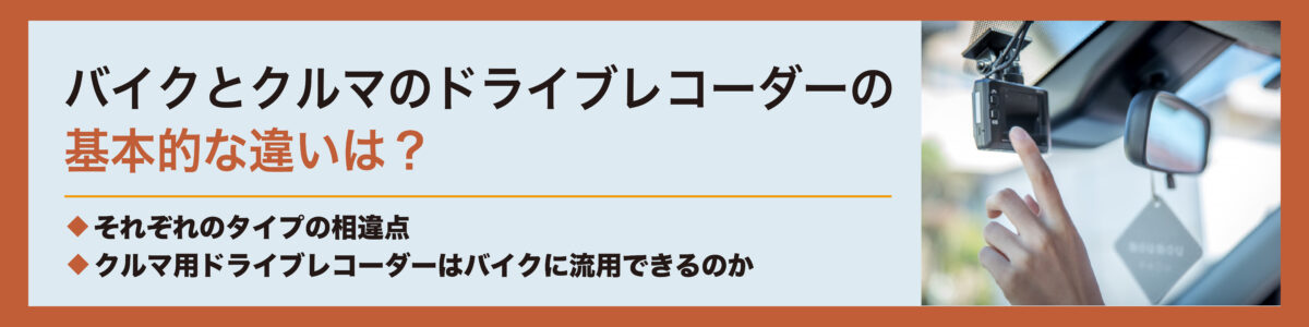 バイクとクルマのドライブレコーダーの基本的な違いは?