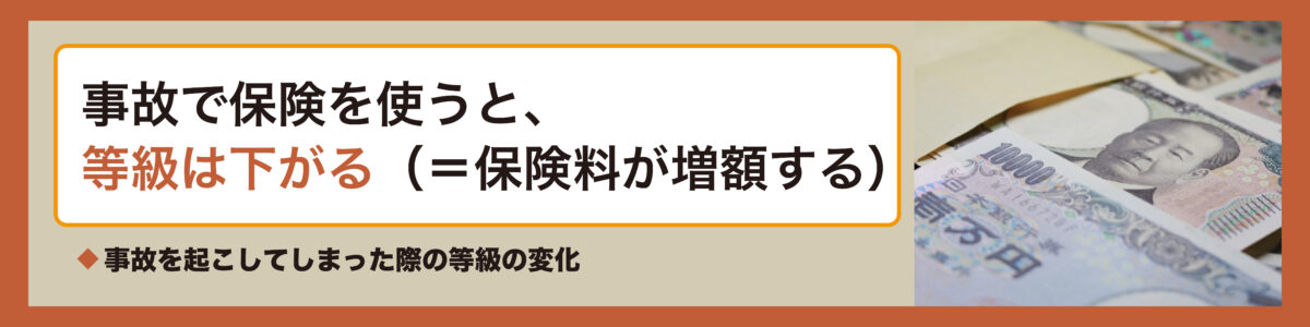 事故で保険を使うと、等級は下がる(=保険料が増額する)