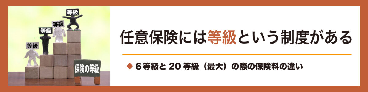 保険金の金額も補償内容で変動しますが、その他に保険には「等級」の制度があり、等級によっても保険料に変動があります。等級は保険会社の契約者に対する信用の度合いを示すもので、事故の少ない契約者ほど等級が高くなります。