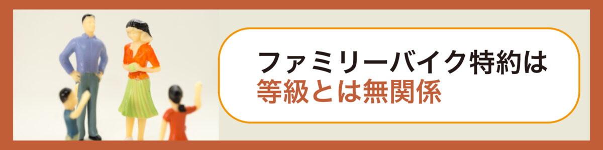 ただしファミリーバイク特約とほかの補償を併用した場合には、ファミリーバイク特約以外の部分で等級の変動は発生します。