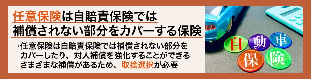 任意保険は自賠責保険では保障されない部分をカバーする保険