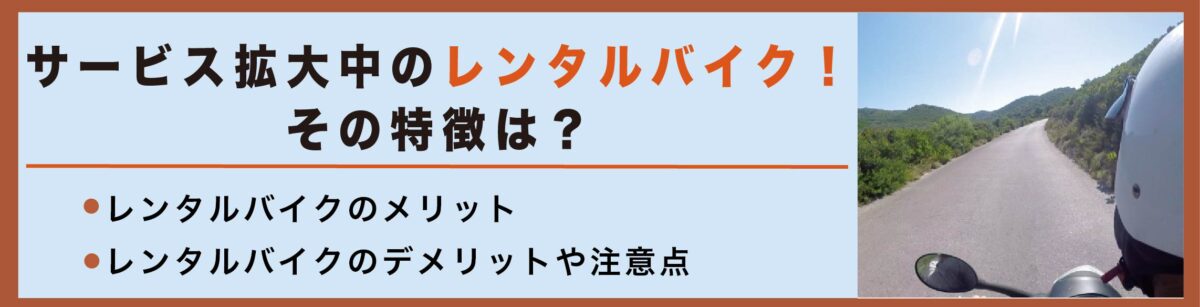 ではレンタルバイクはどのようなサービスで、利用の際にはどのようなメリット・デメリットがあるのでしょうか。