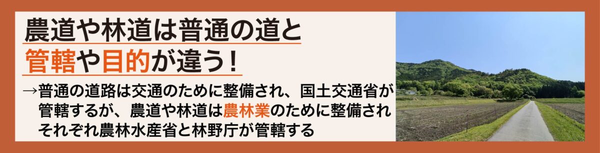 では、農道や林道は、どのような点で特殊なのでしょうか。