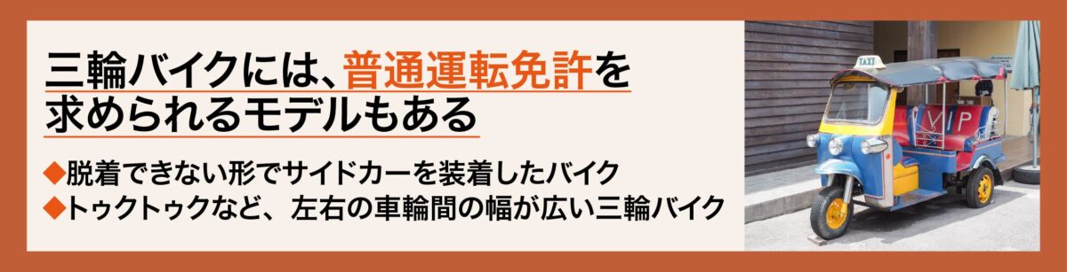 また、排気量が大きい三輪バイクは、原則として普通自動車の扱いとなります。