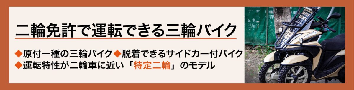 では、二輪免許を所持していた場合、どのような三輪バイクを運転できるのでしょうか。