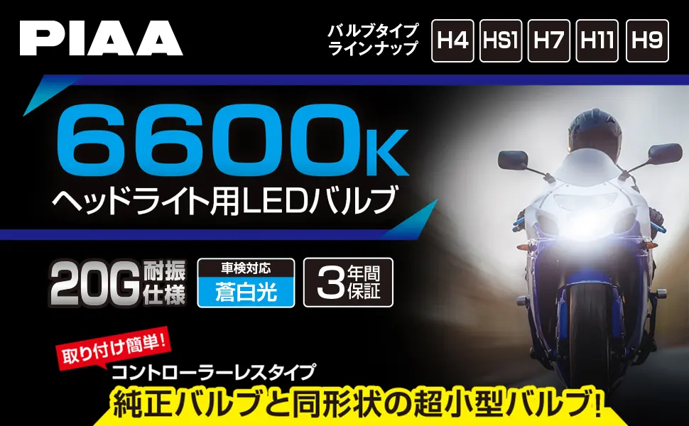 PIAA株式会社は、同社が展開する高性能、高品質な商品を提供し続けている「PIAA」ブランドから、2輪車(バイク)専用のコントローラーレス ヘッドライトLEDバルブ 3商品【MLE11、MLE12、MLE13】を2023年8月1日に発売した。