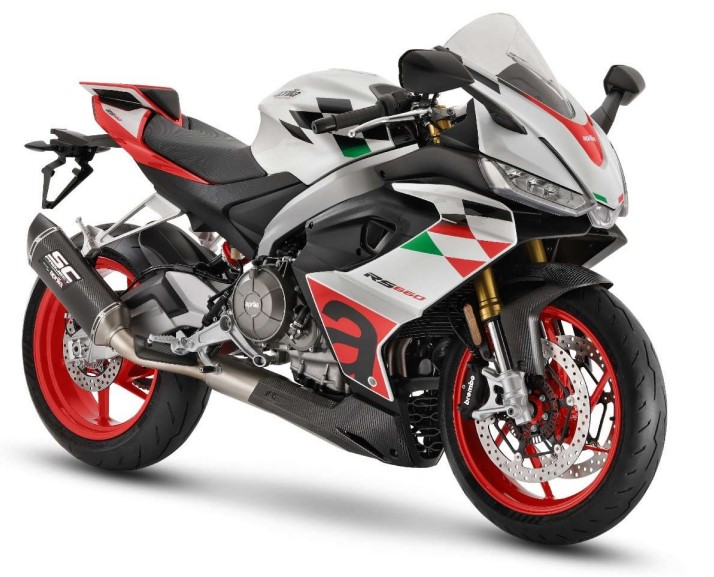 「アプリリア RS 660」の特別仕様車である同製品は、ホワイトとレッドの専用カラーが特徴的だ。またSCプロジェクト製の軽量マフラーや、カーボン製のフロントマッドガードに新デザインのアンダーカウルをはじめとした専用装備により、標準モデルより3㎏軽い166㎏と驚異の乾燥重量を実現している。受注開始は2023年6月1日からで、価格は1,815,000円(税込)となる。
