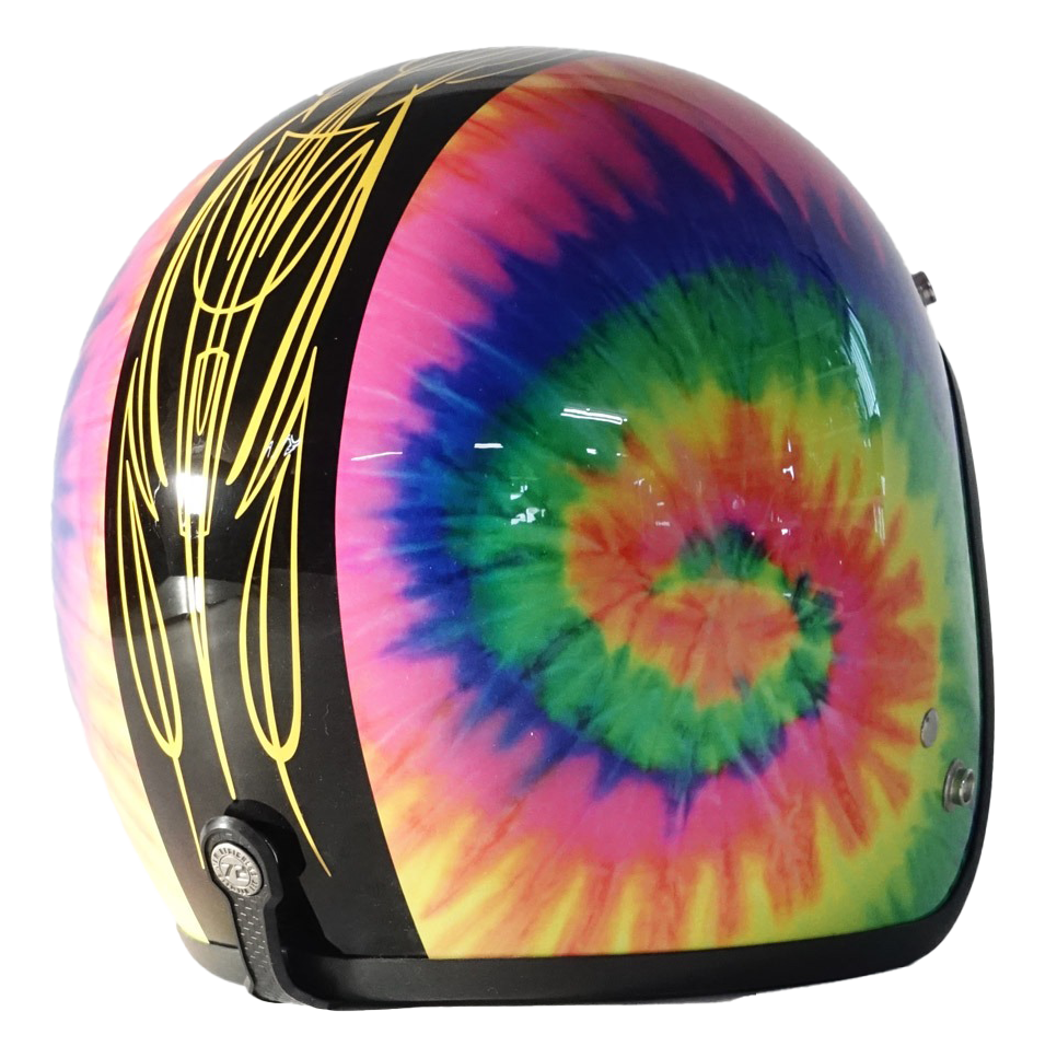 パッと目を引くカラフルなタイダイ柄で、被るだけでテンションが上がるジェットヘルメット。艶あり仕上げで存在感も強めなので、シンプルな車両やウェアのアクセントにもちょうどいいです。見た目だけじゃなく、被り心地にもこだわっているのが72JAMらしいところ。イベントや街乗りでも“映える”一品です。