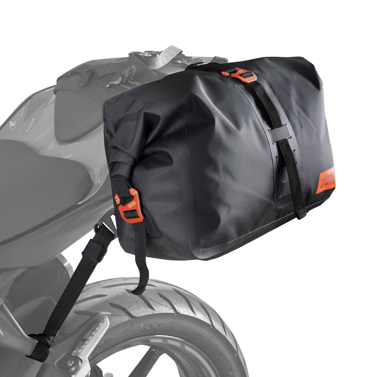 防水・防塵性能IP66を備えた大容量50Lのダッフルバッグ。手持ちのストラップだけでなく、バッグ底面にパッド入りショルダーストラップが格納されており、バックパックのように背負って持ち運べるのが特徴です。50Lと大容量なのでロングツーリングはもちろん、キャンプ道具や着替えをまとめて運びたいツーリングなど、「濡らしたくない」「ガッツリ積みたい」を両立したい人におすすめです。
