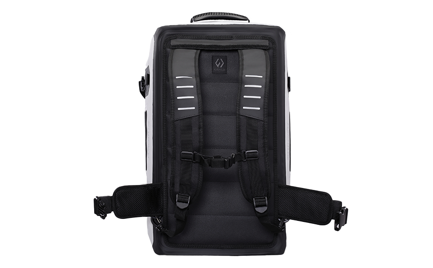 ハードユースに耐えるTPU素材を採用した、防水バックパック。浸水から内容物を守るための作り込みが特徴で、防水規格IPX7の防水ファスナー採用など“濡らしたくない派”に心強い仕様です。スクエア形状で荷物が入れやすく、ライダー向けのギミックも豊富。タフさ優先のバッグ選びなら要チェックです。