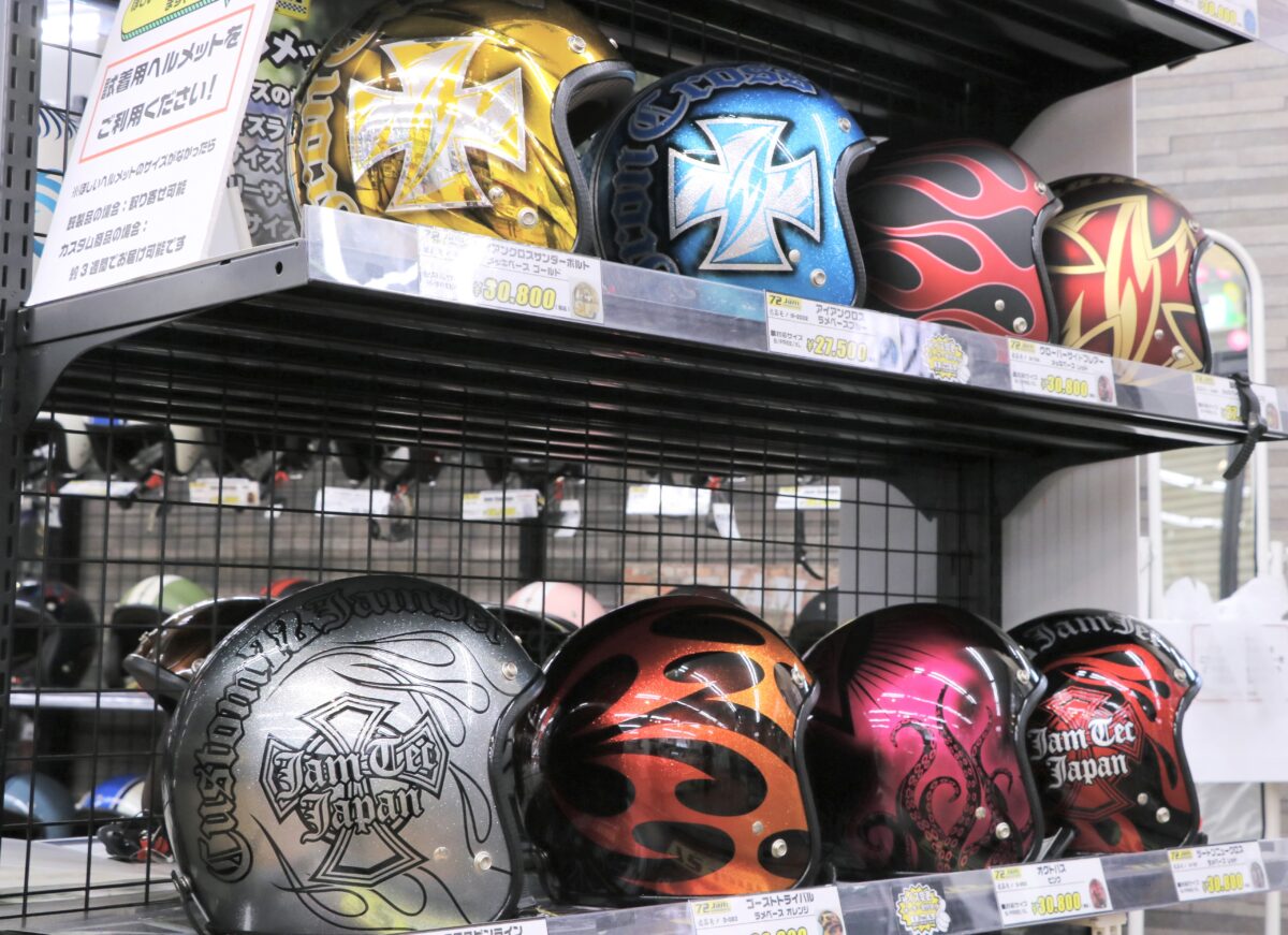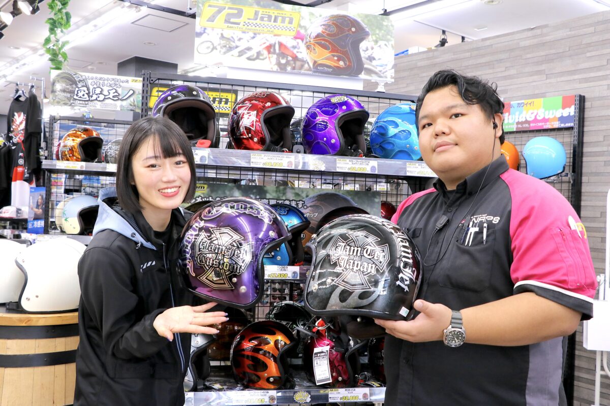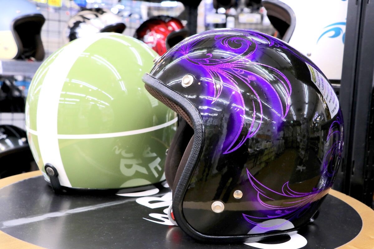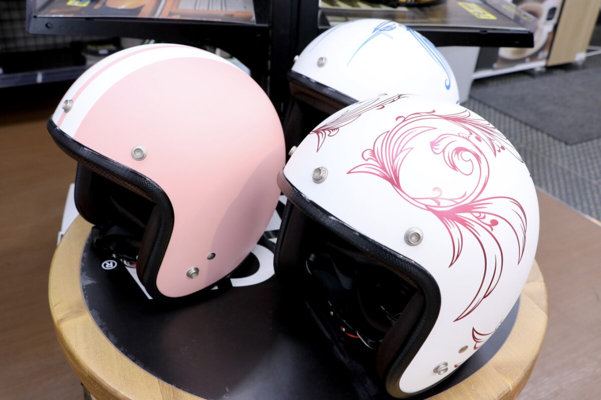 リターンライダーさんは奥さんを後ろに乗せるためのヘルメットを、若い方は個性派のものを、女性はシンプルなガレージシリーズやラメの入った一色のヘルメットを選ばれることが多いですね