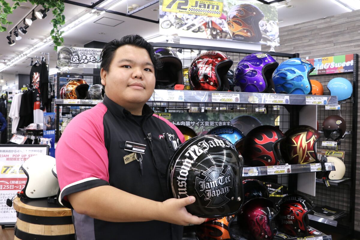 アメリカンやクラシックなバイクに乗る方が多いので、72Jamならではの派手なヘルメットを被りたい方が多い印象です。