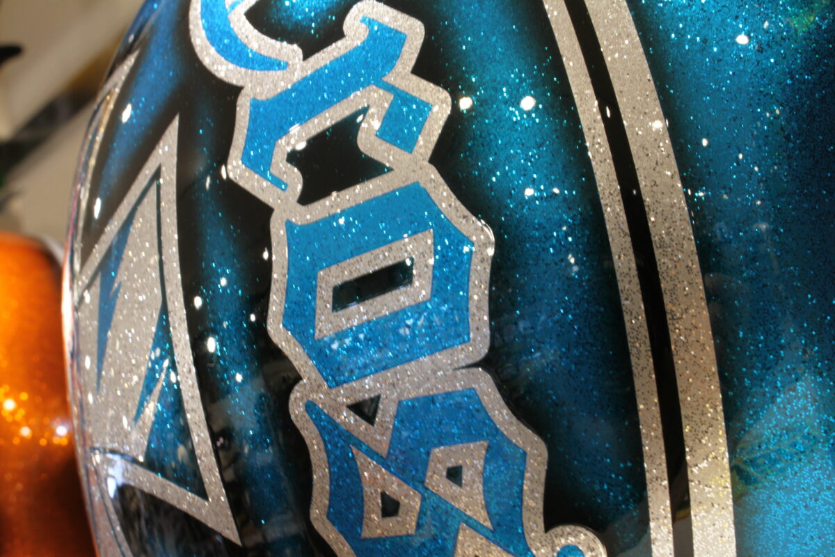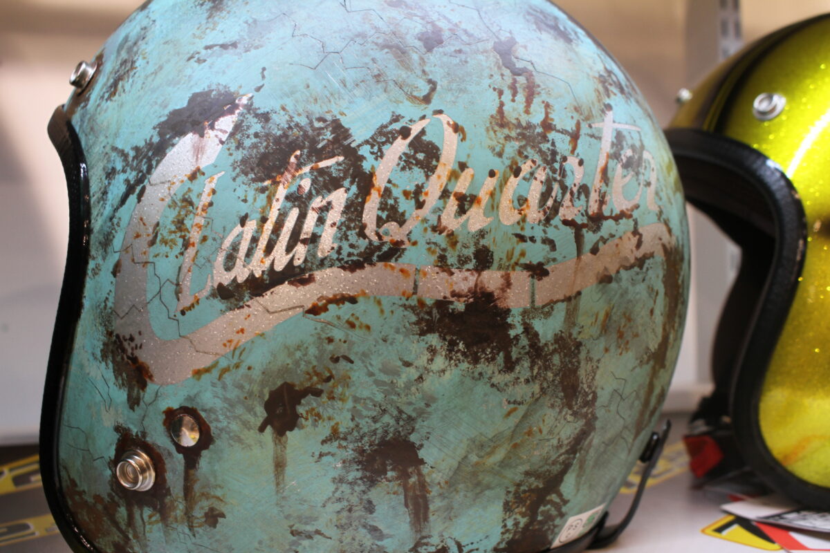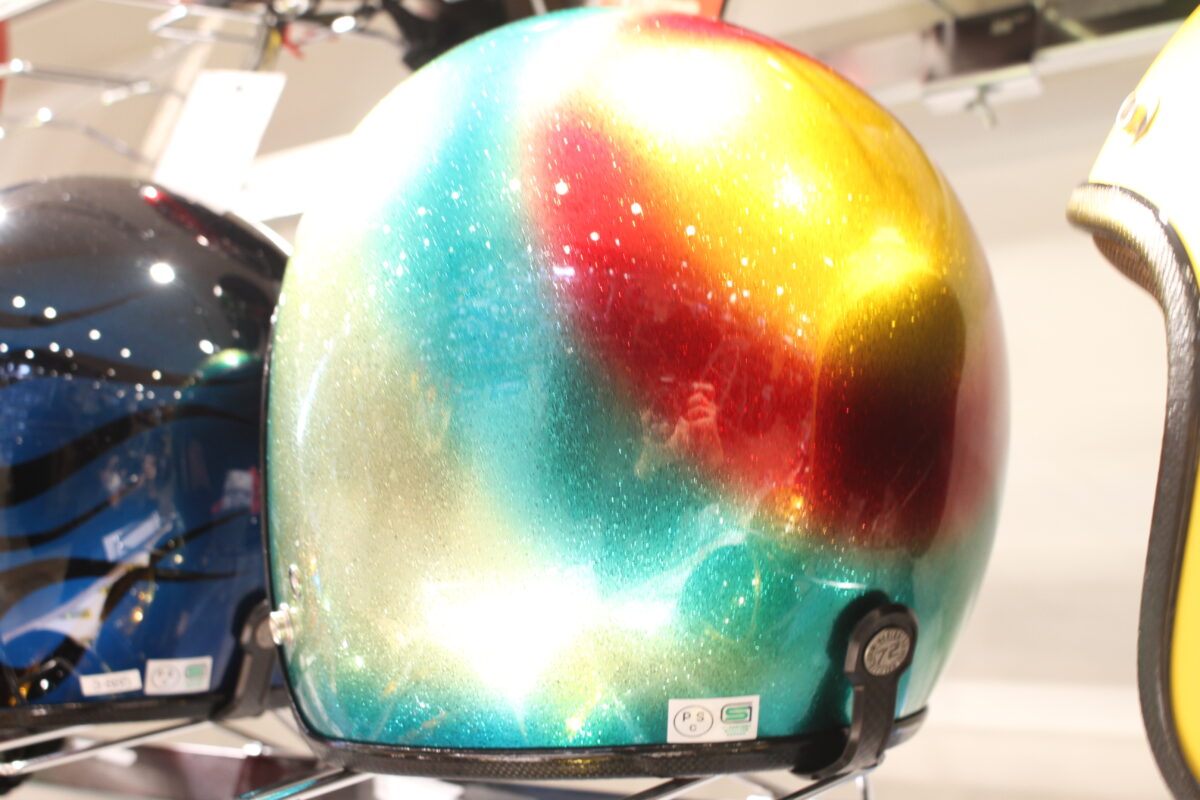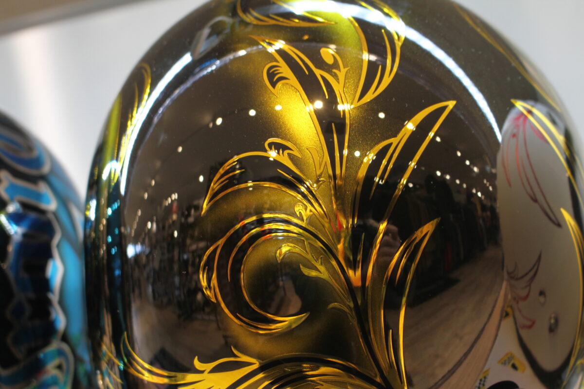 見どころはなんといっても、熟練の塗装職人によってペイントされたヘルメットが勢ぞろいしていること。