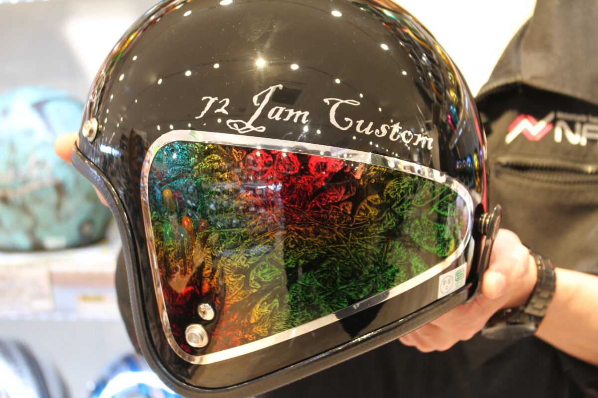 ハイレベルな塗装技術を持つ同社が「シンプルな単色じゃ面白くない」という思想と、「楽しくいこうぜ!!」というコンセプトによって生み出したクラシックジェットが72JAMヘルメットだ。