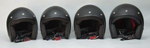 用品店などで見かけるクラシックジェットヘルメットは単色でシンプルなデザインがほとんどだ。