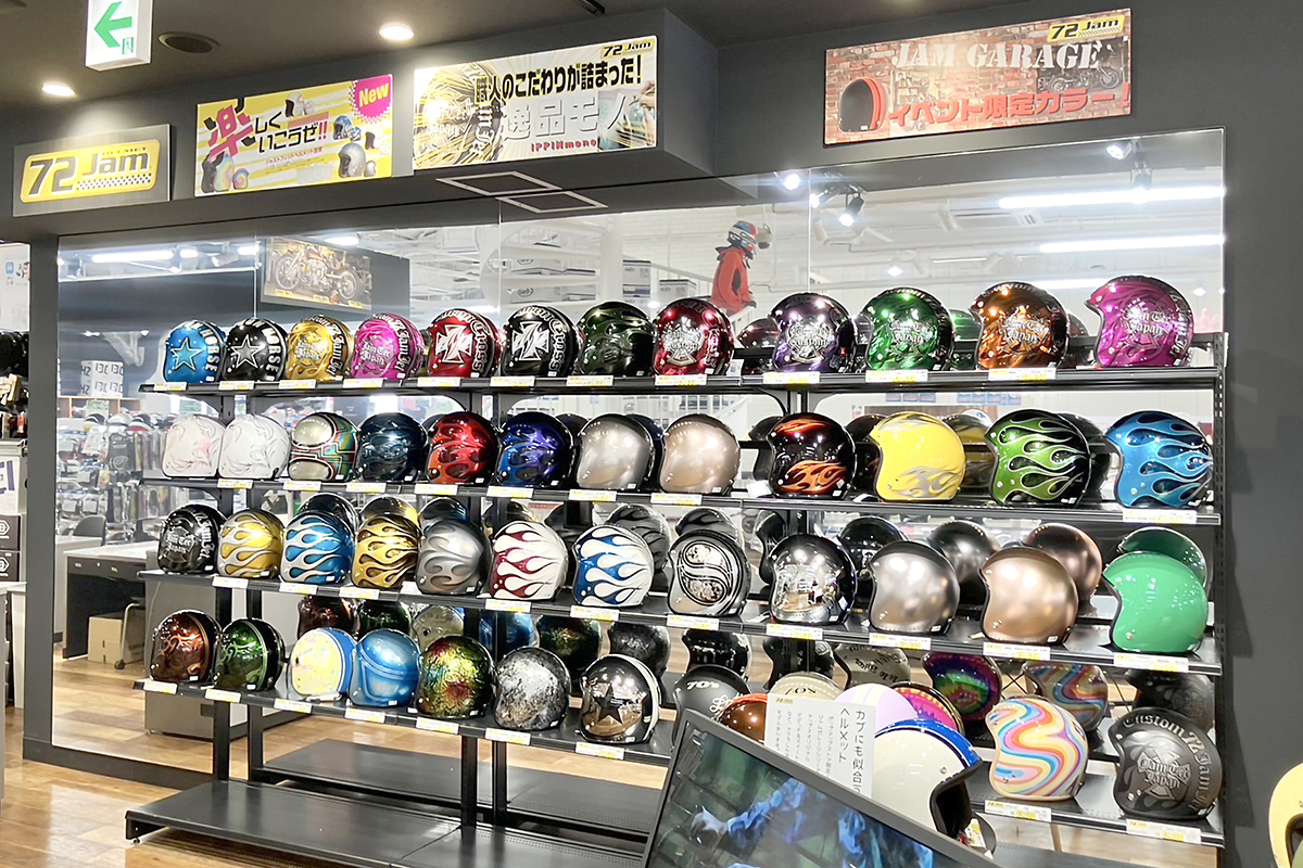 バイクに乗るときの必需品であるヘルメット。どうせかぶるなら好みの物を選びたい。「人とかぶらない個性的なヘルメットが欲しいなぁ」と思ったら、ぜひナップスららぽーと立川立飛店で展開されている72Jamポップアップストアに行ってみて欲しい!