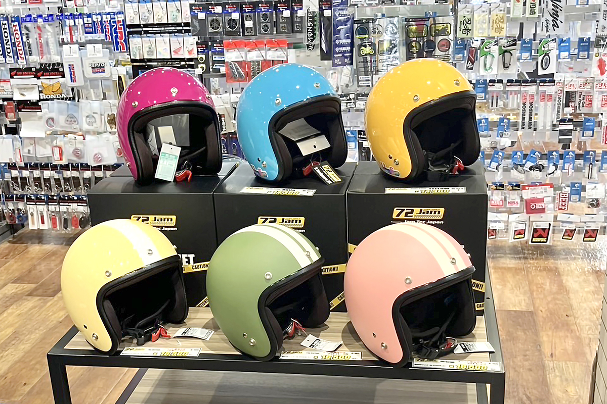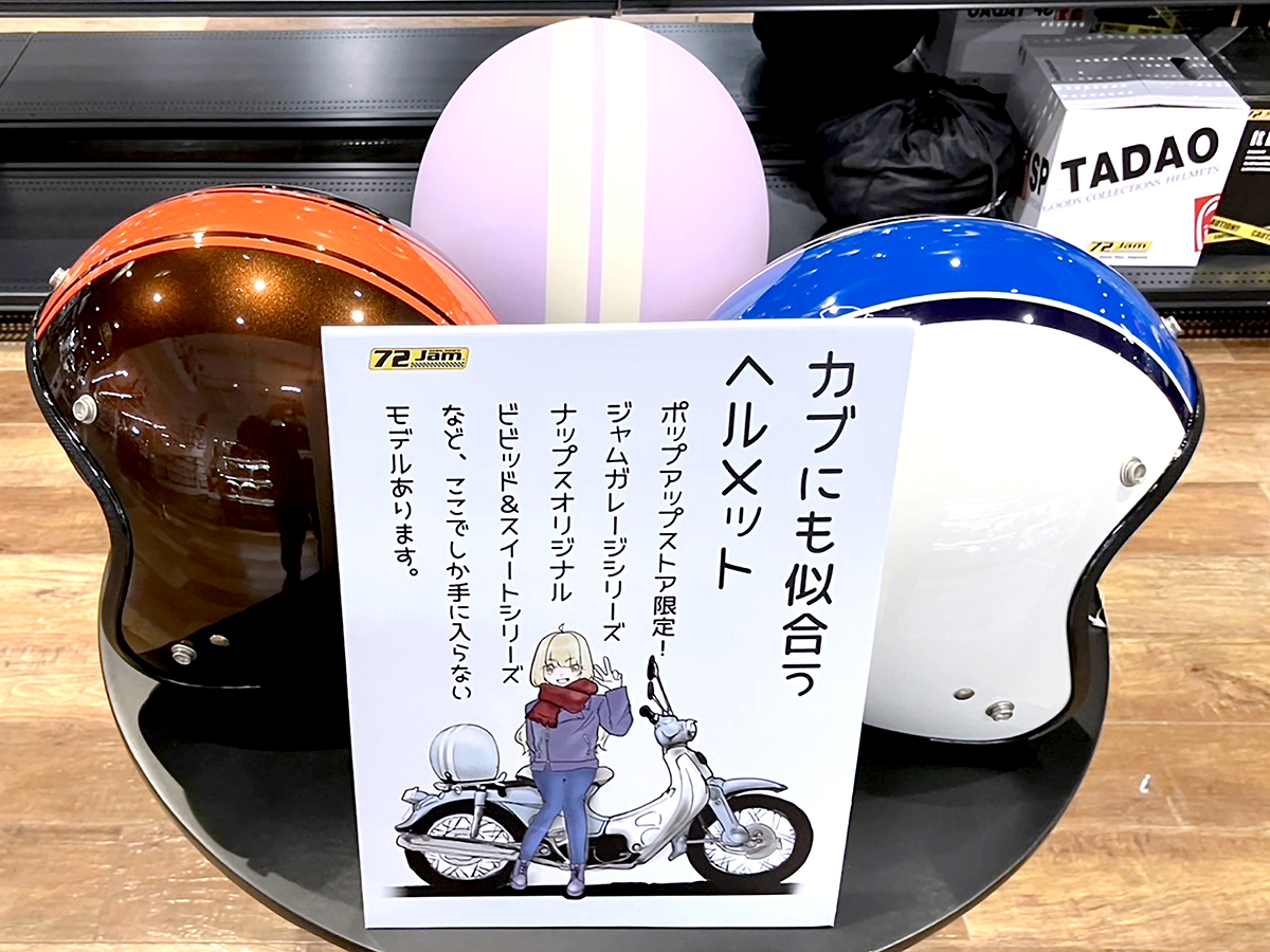 2025年3月1日から「ナップス京都八幡店」でも72Jamポップアップストアが展開されている。ヘルメットコーナーがカラフルになったと好評で、注目度も高いそうだ。