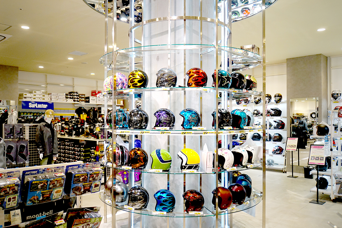 バイクに乗るときには必ず被らなければいけないヘルメット。乗っているバイクやウエア、自分の好みにあわせたいと考えるのが普通だ。だが大手ヘルメットメーカーのカタログを見るとどこかで見たようなモデルが多い印象。いまひとつピンとこないなぁ、と思ったとき訪れてもらいたい場所がある。それは「ナップスららぽーと立川立飛店」だ。