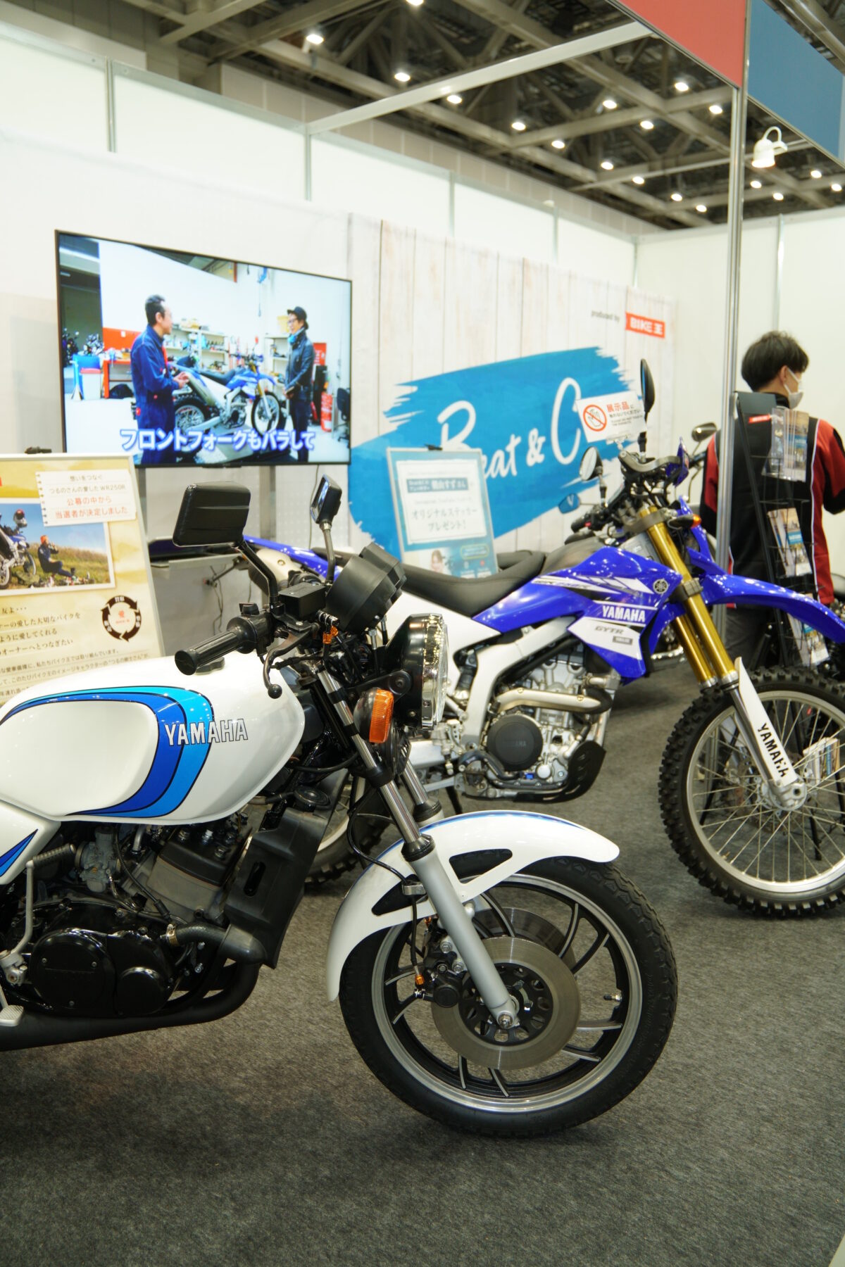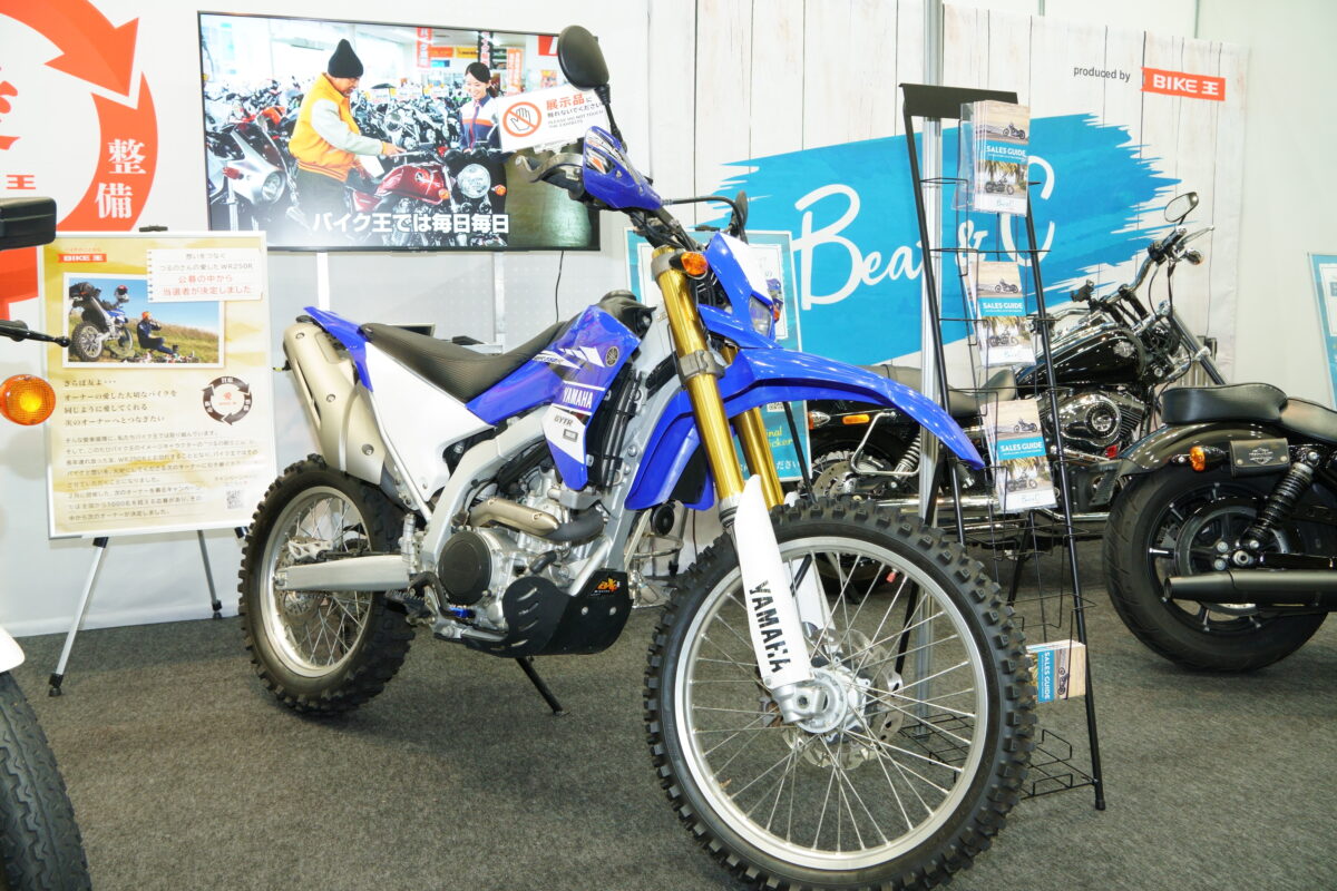 この愛車循環の取り組みの一例として、バイク王のイメージキャラクター・つるの剛士さんの長年連れ添ったWR250Rを展示。丁寧に整備されたWR250Rは、「愛車への想いをつなぐ。つるのさんの愛したWR250Rオーナー募集」キャンペーンで選ばれた新オーナーの車両になっている。