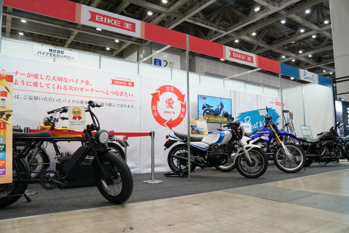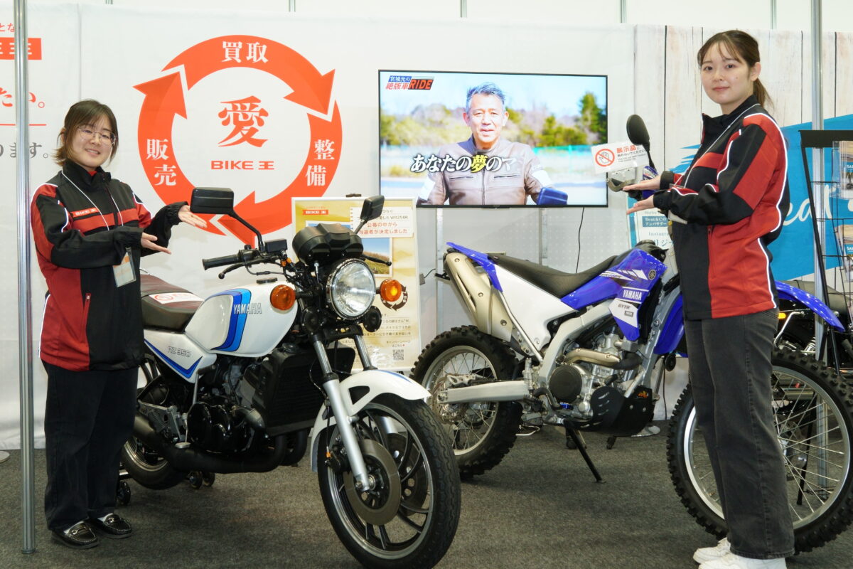 「愛車循環をイメージしやすいということで、CB750four、RZ350、つるのさんの愛車だったWR250Rというような絶版車が展示されていましたが、車両の新旧は問いません。限りある資源を有効に活用していくのはバイクも同様です」と話してくれたのはバイク王の菊田さんだ。