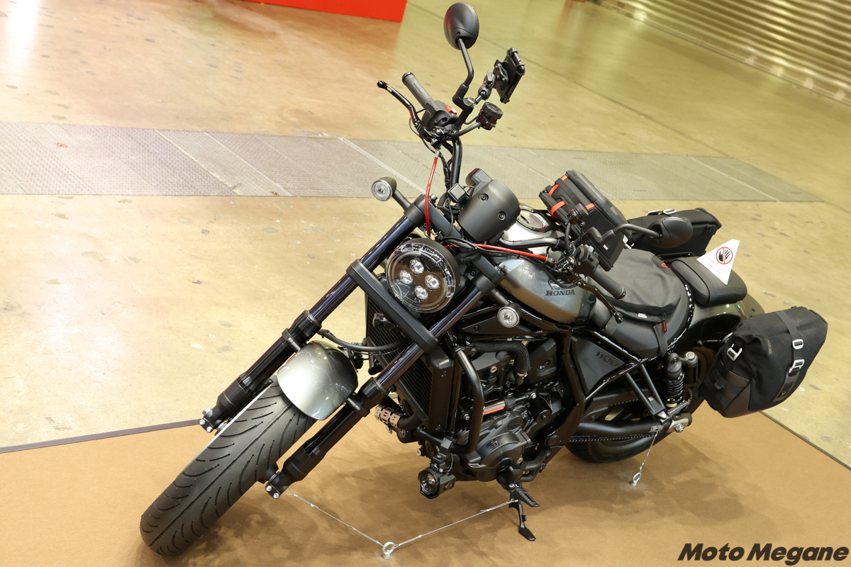 ラインアップが豊富なSWモテック製品を活用して、クルーザーのホンダ・レブル1100DCTをツーリング仕様に。サムブレーキ(左手親指でリアブレーキを操作する機構)の追加に対応する専用リアブレーキマスターシリンダーのラインアップがあるゲイルスピードだからできる、DCT仕様車に向けた新提案として、フットブレーキとABSを生かしたまま、左手でリアブレーキの入力を可能にしている点も要注目!