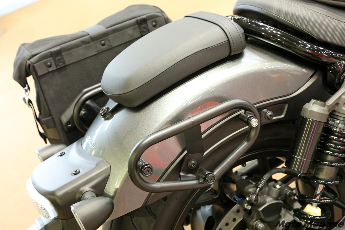 車種別専用設計された、スチールパイプ製でシンプルな形状のSLCサイドキャリアは、ネオクラシック系ソフトサイドバッグのレジェンドギアLC1(2万8160円)またはLC2(3万910円)、ハードシェルタイプのアーバンABSサイドケース(左右各2万7280円)、完全防水のSYSバッグWP S(2万5410円)またはM(3万910円)と組み合わせて使える。