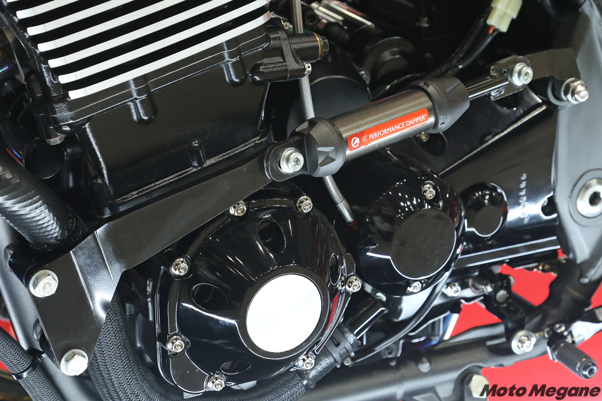 パフォーマンスダンパーは、ヤマハ発動機が四輪用に開発した技術。二輪車向けに転用した製品は2011年にデビューした。アクティブは、このダンパーの供給を受けてヤマハ車以外の車種専用に開発した製品を2021年から市販。走行中のフレームがごくわずかに変形することで発生する振動を減衰することで、 快適性や走行安定性などの向上を図れるアイテムだ。
