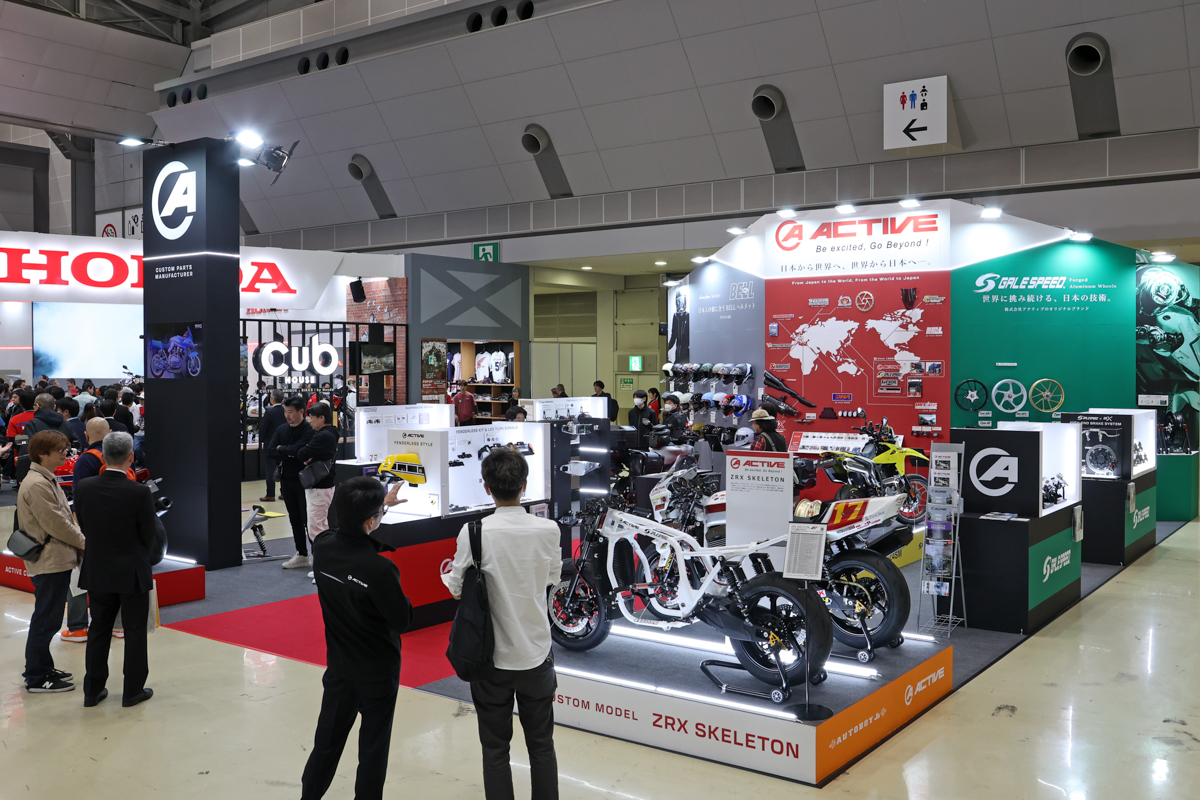 愛知県を拠点とするアクティブは、二輪パーツの企画開発、製造、輸入、販売などを手がける企業。自社ブランドとしては、5000点を超える製品をラインアップする総合パーツブランドのACTIVE(アクティブ)、アルミ鍛造ホイールからスタートして現在はキャリパーやマスターシリンダーなどのブレーキ関連パーツやフットコントロールキットにも幅を広げたGALE SPEED(ゲイルスピード)、ハーレーダビッドソン用のホイールを展開するGLIDE(グライド)などがあり、これらのブランドだけでも膨大な製品ラインアップ数を誇る。