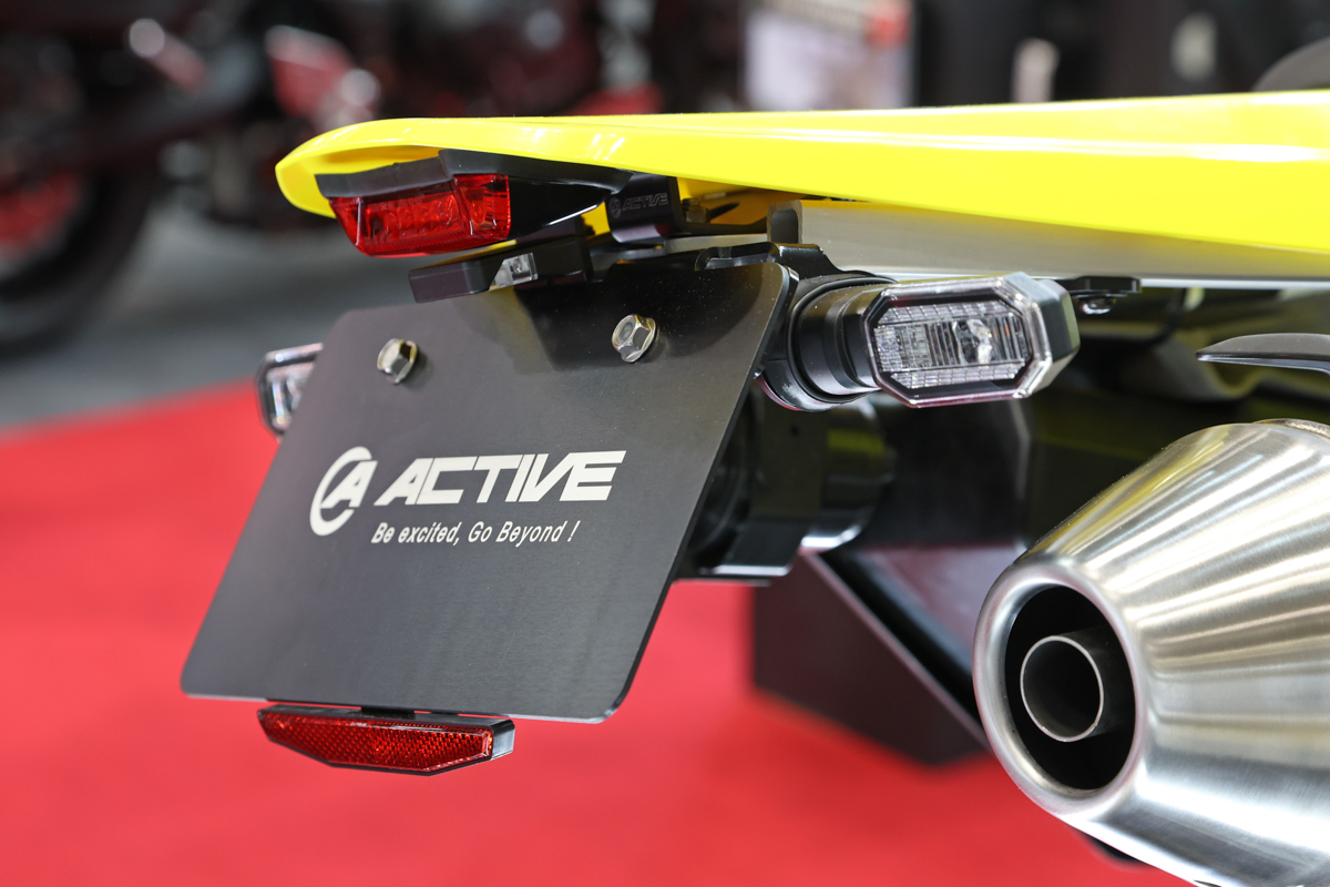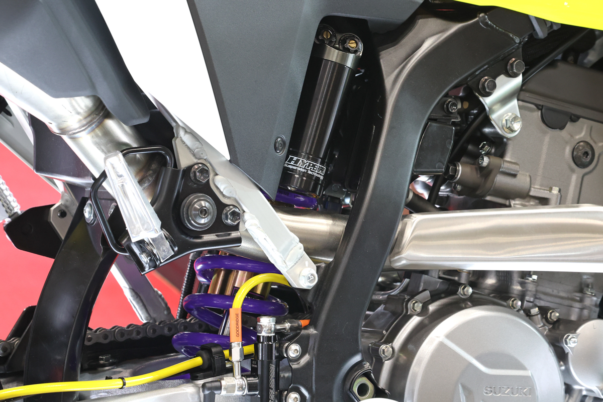 ちなみにショーモデルのDR-Z4SMには、ハイパープロ製のフロントスプリングやリアショック(いずれもプロトタイプで発売時期未定)、いわゆるフェンダーレスキットの一種となる「LEDモタードテールキット(同じく試作品で発売時期未定)」など、多くの開発中パーツも装着されていた。こちらの登場にも期待したい!