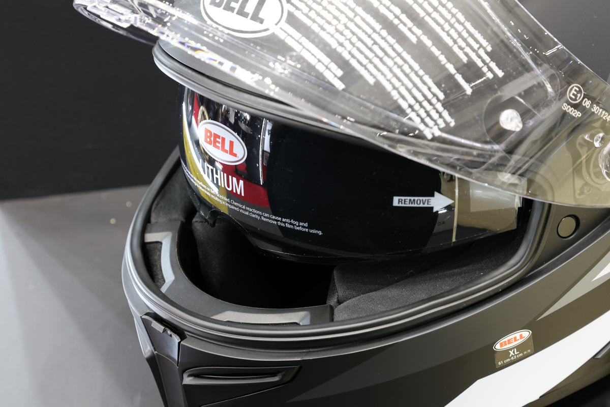 アクティブが取り扱う米国ベル社のヘルメットシリーズに、求めやすい価格の新作フルフェイスが追加された。LITHIUM(リチウム)は、新設計のシェルと内蔵ドロップダウン式インナーシールドを組み合わせたモデル。帽体左側のレバーを上げると、スモークタイプのインナーシールドが出現する。