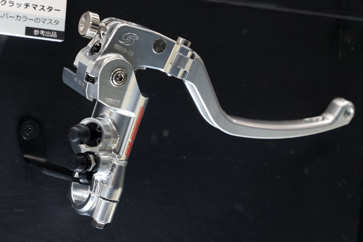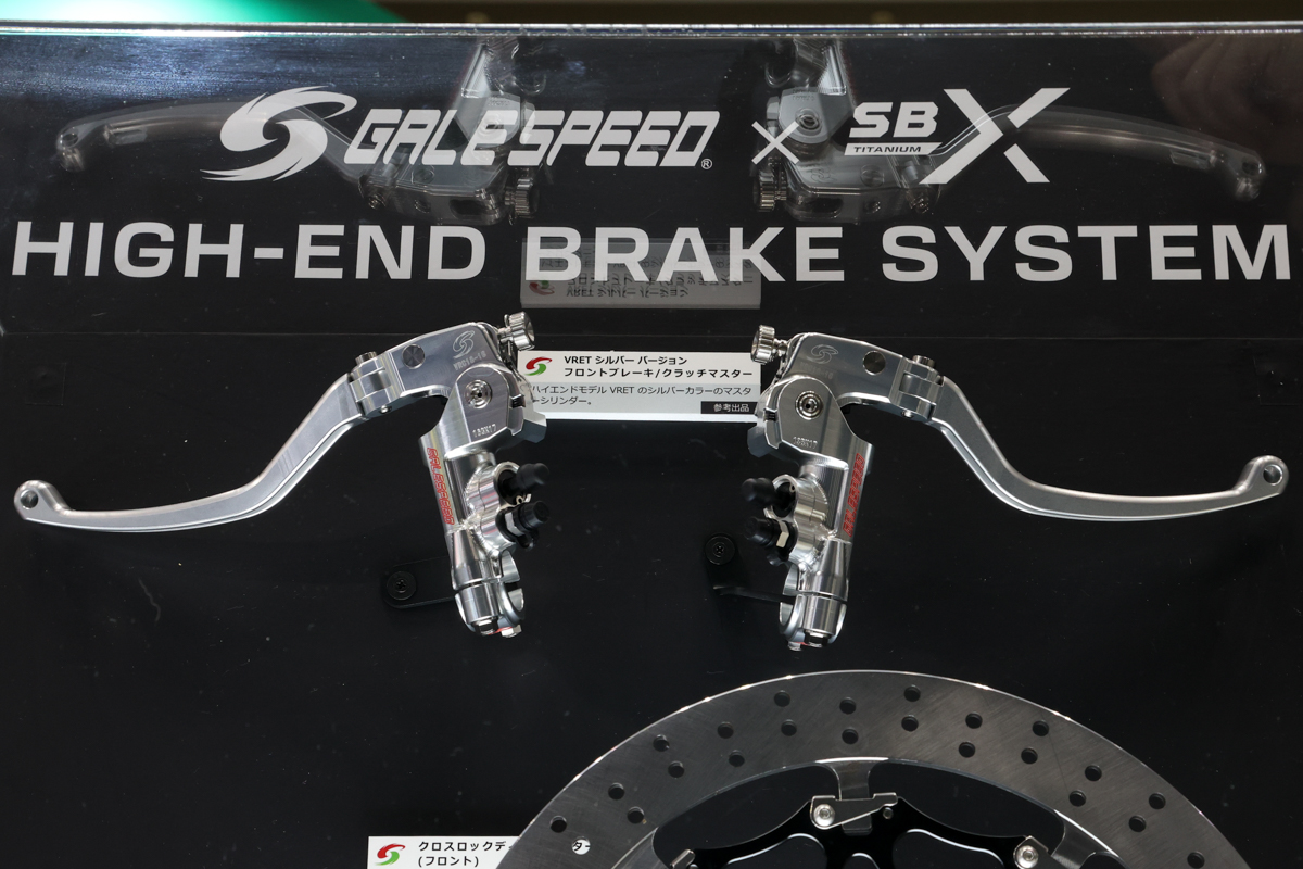 ゲイルスピードのマスターシリンダーで最高峰となるのがElaborate(エラボレート)シリーズ。中でもVRETは、各部に64チタン合金パーツを使用した、エラボレートの頂点に君臨するモデルだ。現在はブラック仕様のみ市販されているが、東京モーターサイクルショー2026ではシルバー仕様を参考出品。ハンドルまわりに輝きを与え、切削痕が強調されたルックスがカスタムテイストを高める。こちらはあくまでも「参考出品」で、発売時期や価格も未定とのことだが、反響次第で市販化も!?
