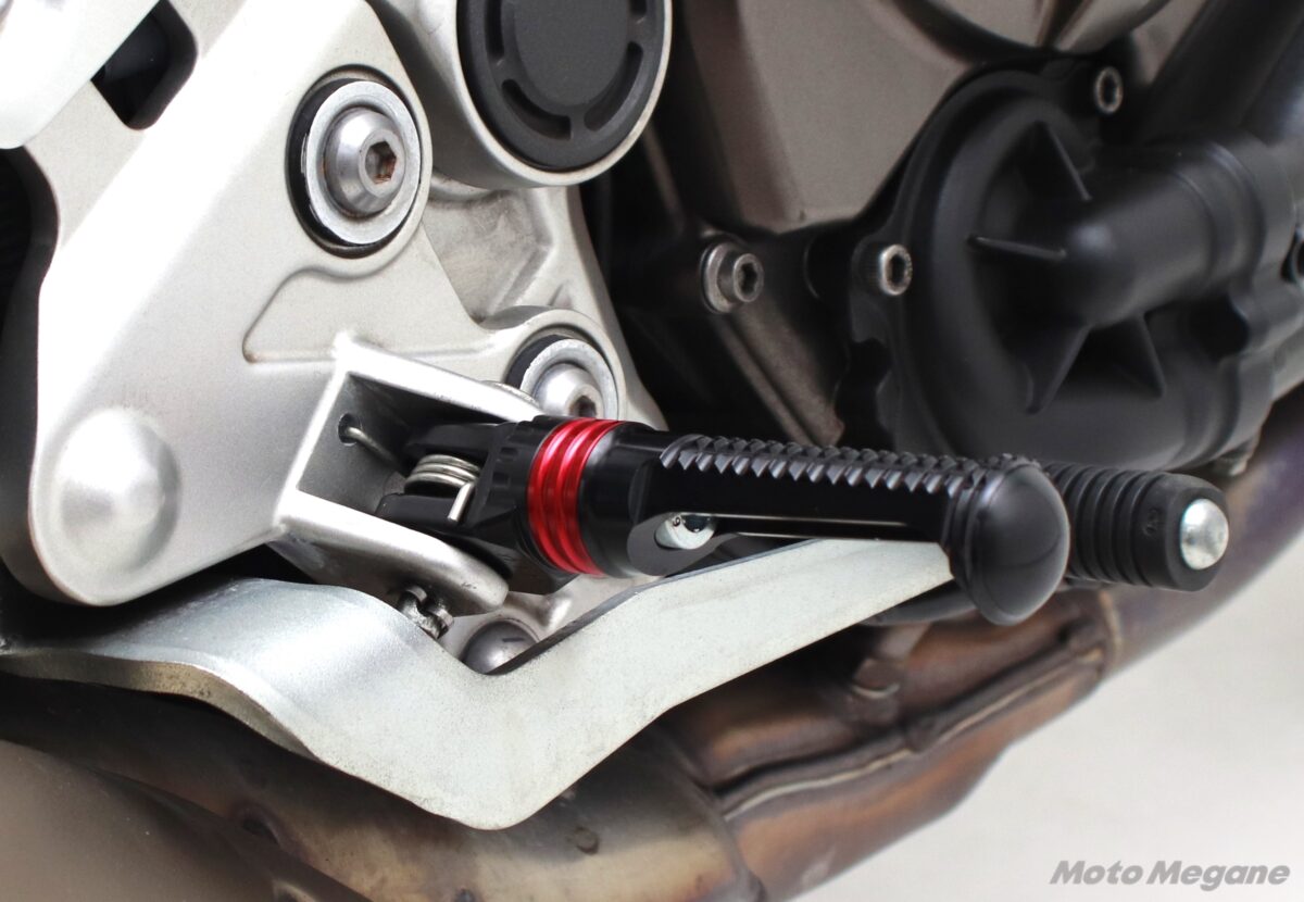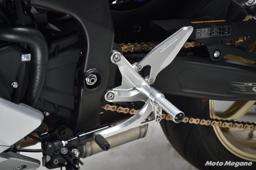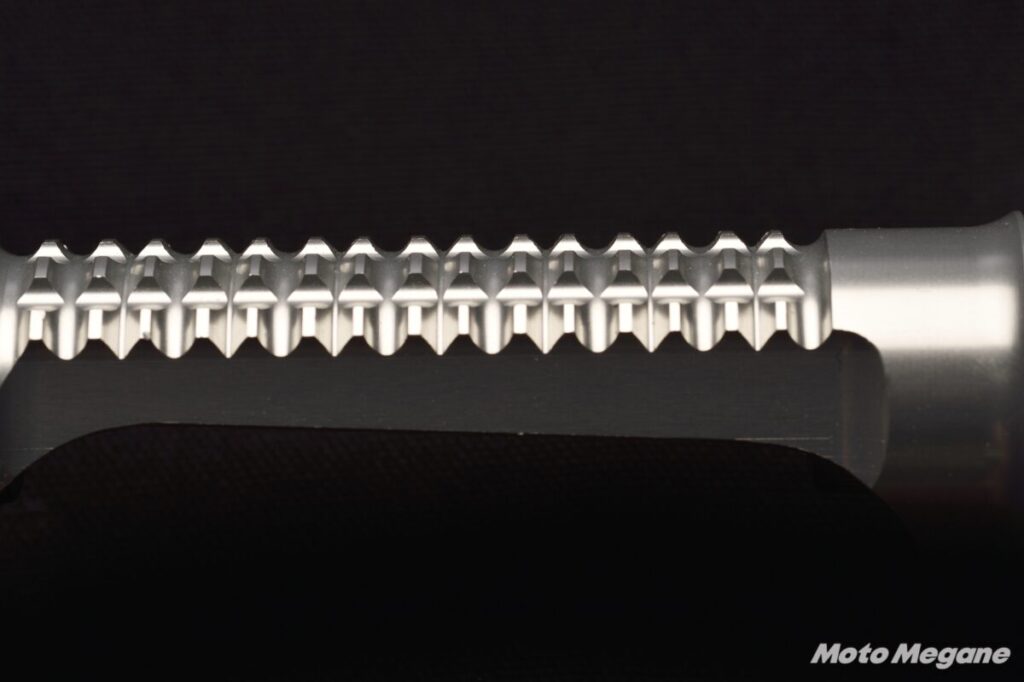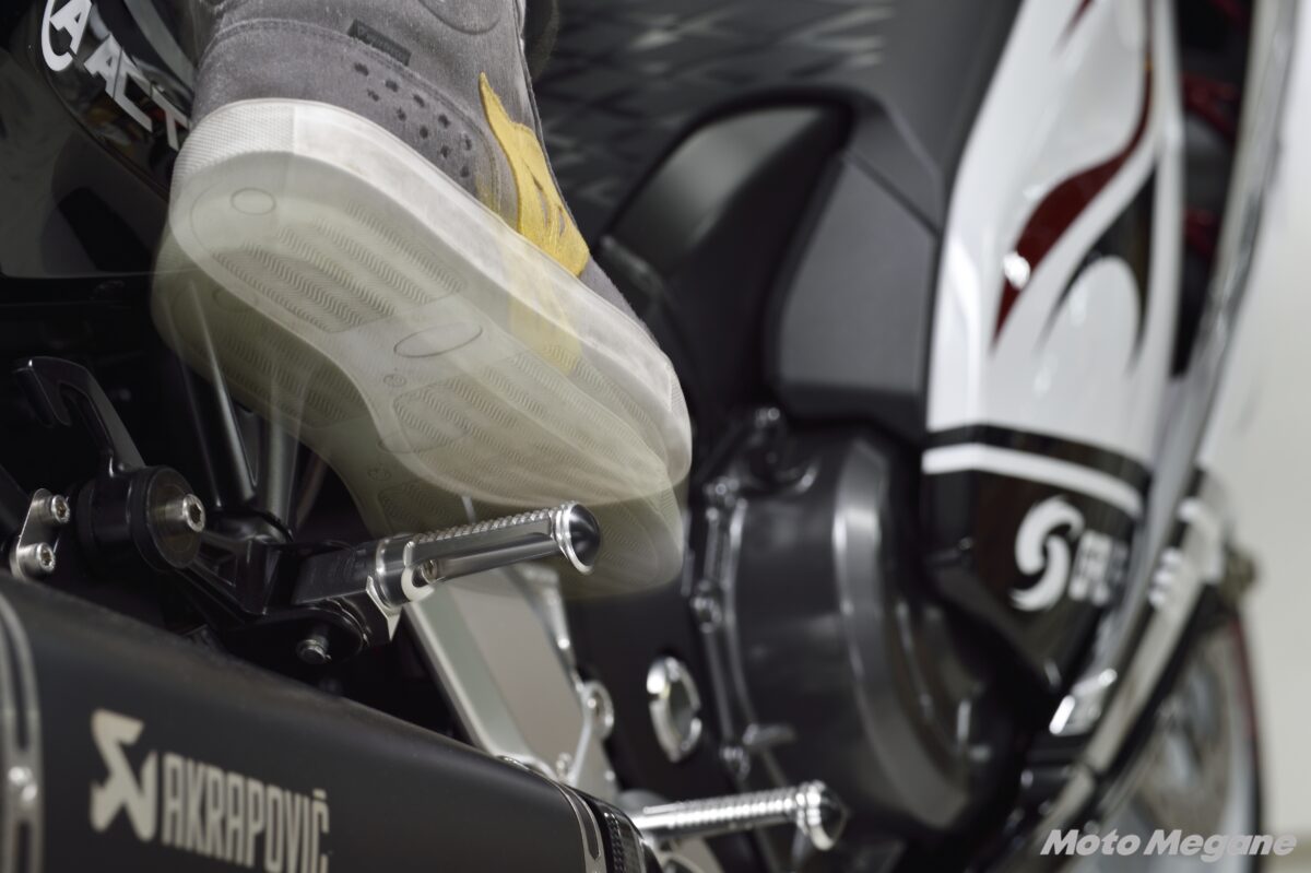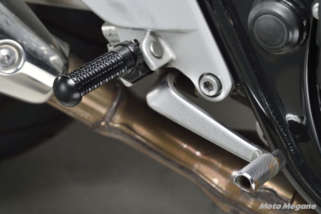 ステップが滑らないと、そこでのホールド性が高まります。すると、荷重がかけやすくなって、バイクのコントロール性が良くなります。ステップで踏ん張れるんだ! という感じが如実にわかります。