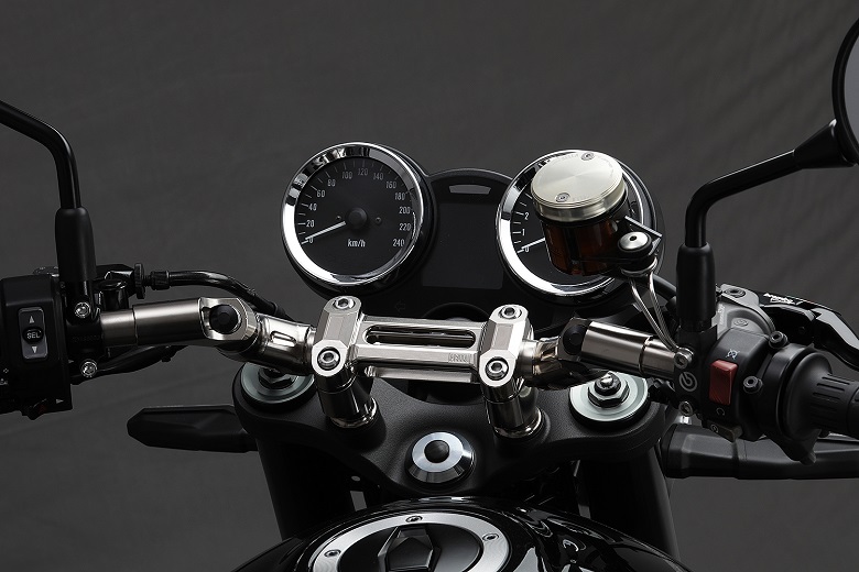 理想のライディングフォームを追求できるアルミ削り出し可変ハンドルにZ900RS/Z900RS cafe専用デザインの『ニッケルめっき仕様』
