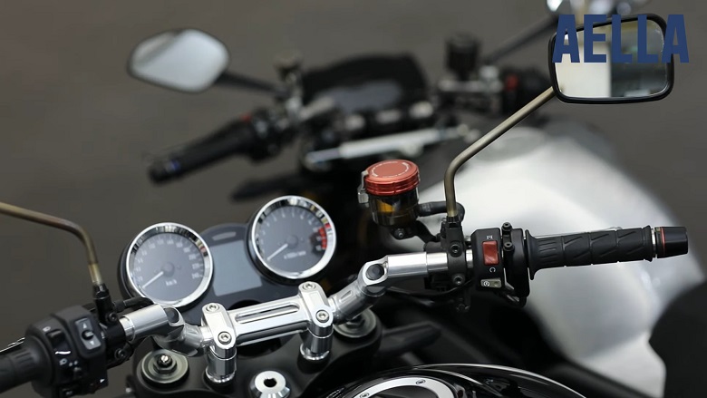 なお、AELLAのアルミ削り出し可変ハンドルは、車種ごとに専用設計されている(一部共通パーツは除く)。その理由は、車種により個性もライディングポジションも異なるため、ひとつの形状だけではベストなフィッティングが難しいからだ。今回紹介している『アルミ削り出し可変ハンドル・無電解ニッケルめっき』もZ900RSおよびZ900RS cafe専用設計で、ノーマルのブレーキホースやワイヤーなどの配線類はそのまま使用でき、ハンドルスイッチの取付穴もあらかじめ開けられているのは嬉しい。