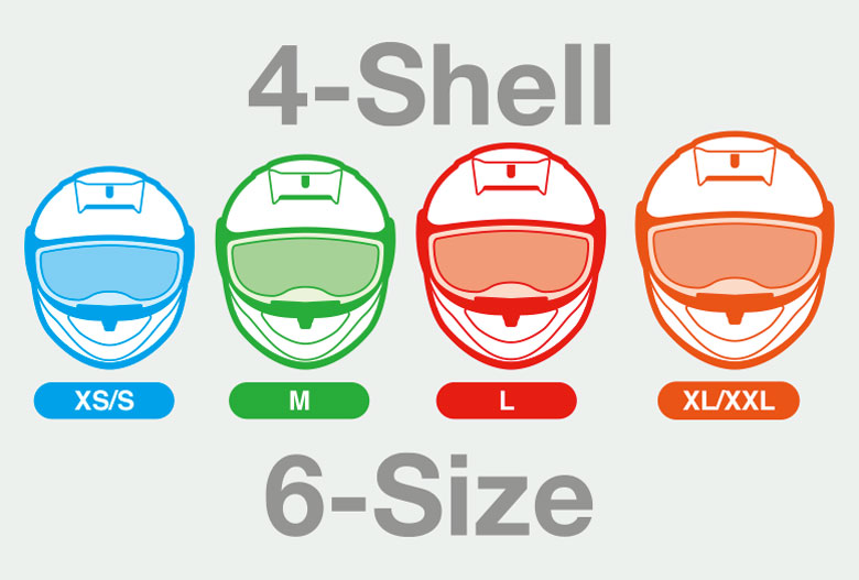 サイズはXS~XXLまで用意されていますが、帽体は4サイズ用意されており軽量・コンパクトを実現しています。
