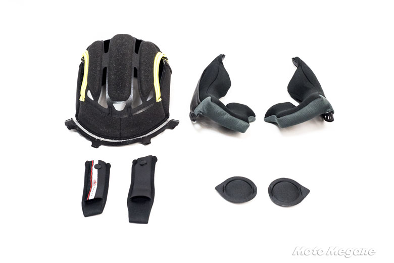 メガネ対応のチークパッドや近年ライダーの必須装備となってきているインカムスピーカー用のスペースを用意するなど普段使いを快適にする配慮もバッチリ。
