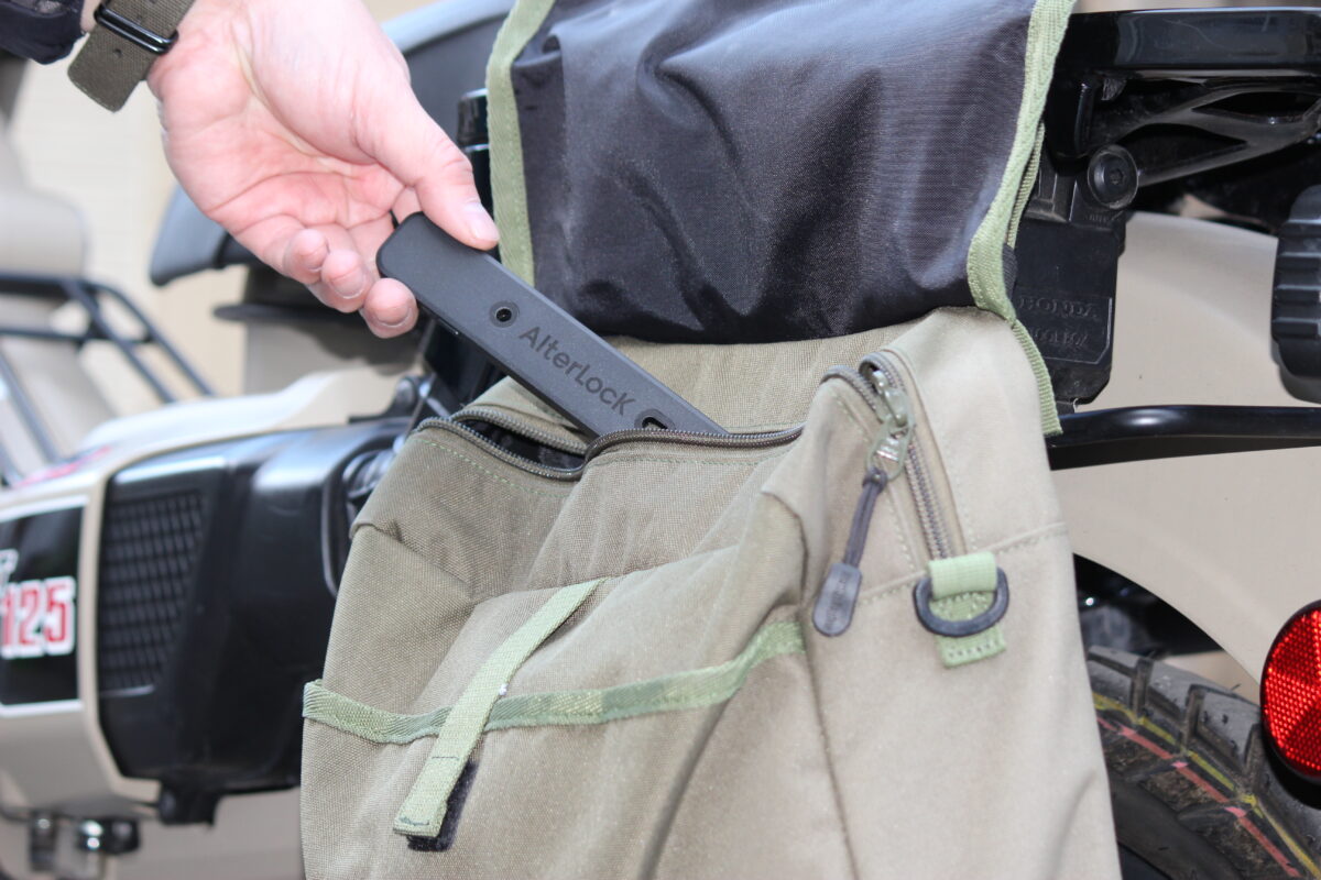 今回はBMWR1300GSのシート下にタイラップで固定したが、すんなり収納できた。またCT125ハンターカブの場合は、キャリア下の工具ボックスに入れれば、フタをロックできるので安心だった。もちろんツーリングバッグなどに入れても機能するので、車両が変わった場合でも対応できるのがいい。