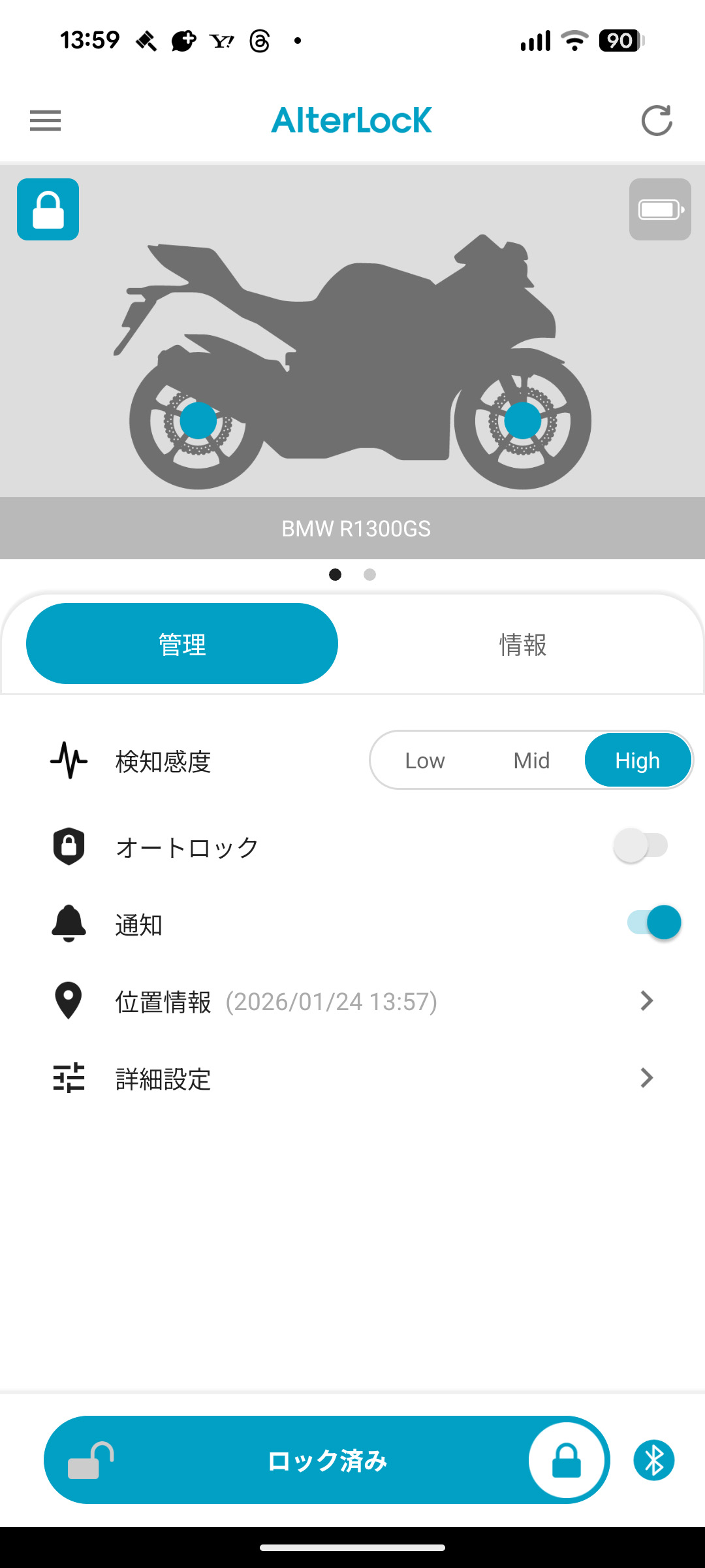 またアプリの設定による「オートロック」機能で自動でロック、近づくとアンロックする方法もある。この「オートロック」機能はGEN3から加わったもので、あらかじめこの設定をしておけば、いちいちアプリ上でロックをかける必要がなく、スマホがバイクから離れればロックがかかり、スマホが近づけばロックが解除されるので、非常に便利である。