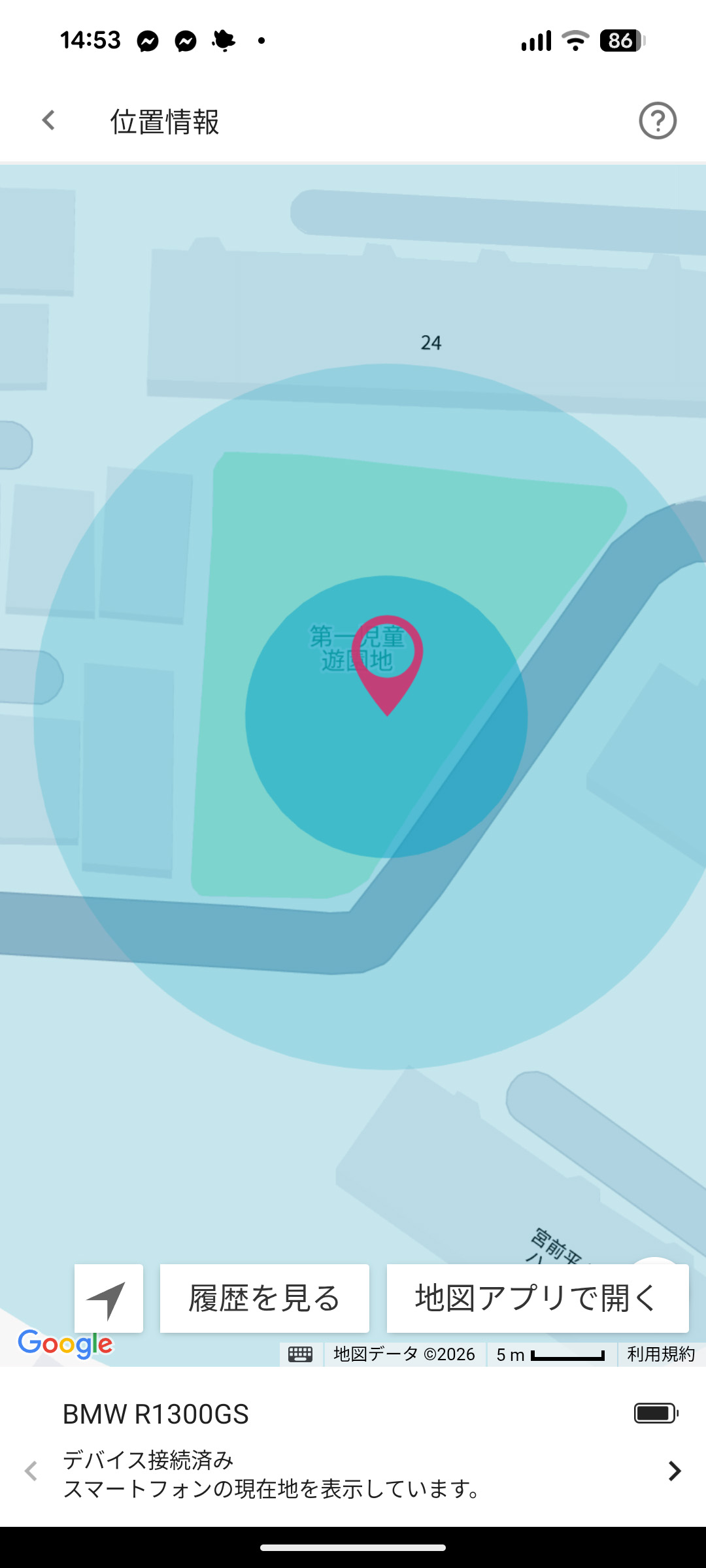 たとえば、ツーリング先の駐輪場で車にぶつけられて倒された場合や、乗り入れのできないキャンプ場などで一晩目の届かない場所に置く際なども、ロックをオンにしておけば異常の際に、すぐ通知されるので、その安心感は非常に高い。