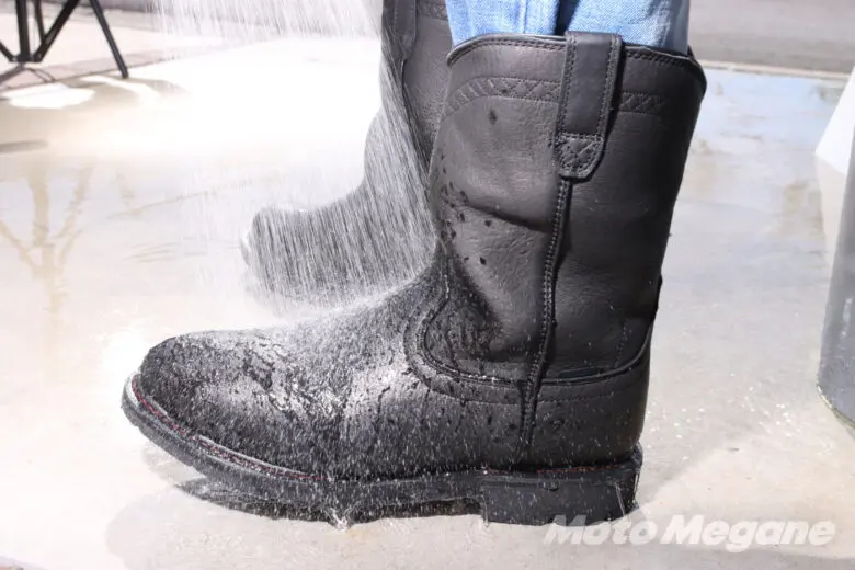 この段階では水の侵入は確認できなかった。ただ、あくまでリアルレザーのブーツなので長靴のような使い方はNGだろう。防水だからといって酷使せずに、豪雨のときなどは防水ブーツカバーを併用したい。