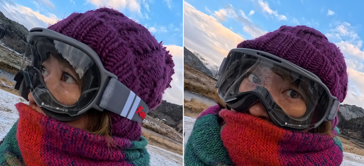 スノーボードで使用する時も雪によるチラつきを抑え、転倒時の衝撃だけでなく強い紫外線から目を保護し、視界も非常にクリアで広い。