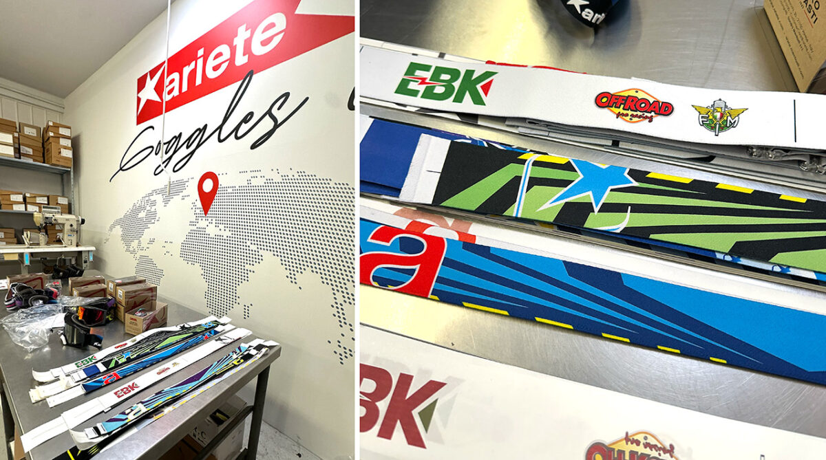 arieteゴーグルでは、なんと25セットからチーム名や大会名などが入ったオリジナルベルトの製作が注文できる。