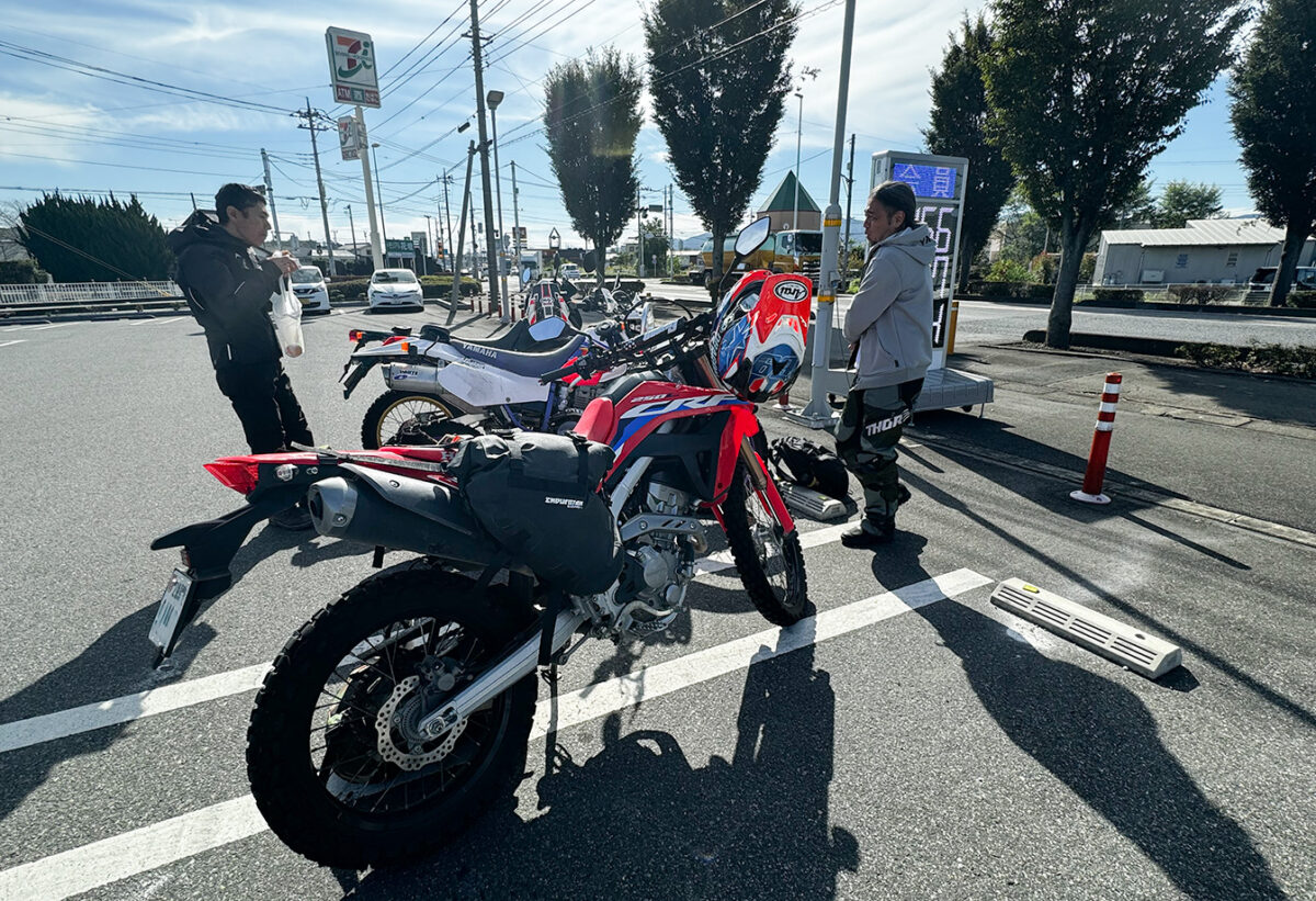 どんなに早い時間帯で集合しても、バイク好き仲間が集えば会話に花が咲くもの。そろそろ出発しようかという時に「あ、インカム繋がなきゃ」からの繋ぎ待ち時間は、何度「先にやっておけば後悔」をしても繰り返してしまいがち。