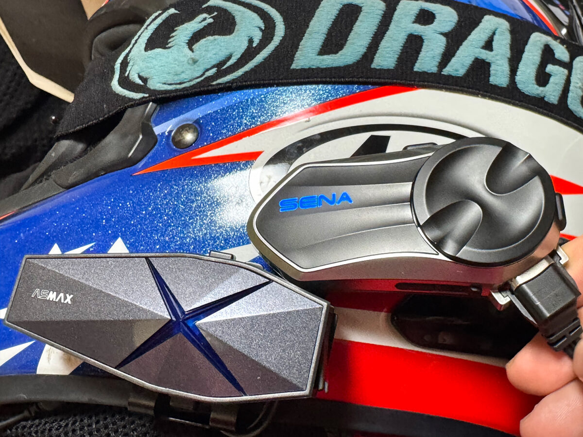 この連携は、ASMAX機種同士だけでなく、他社メーカーモデル(SENA/B+COM)でも双方の会話音声をアクションカムの映像に残すことができた。