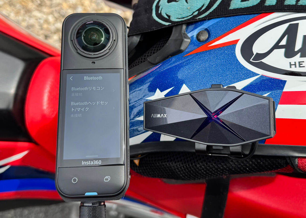 この時、X5側で音声コントロールをオンにしておけば、「録画開始!」などインカムでX5を音声操作可能だ。