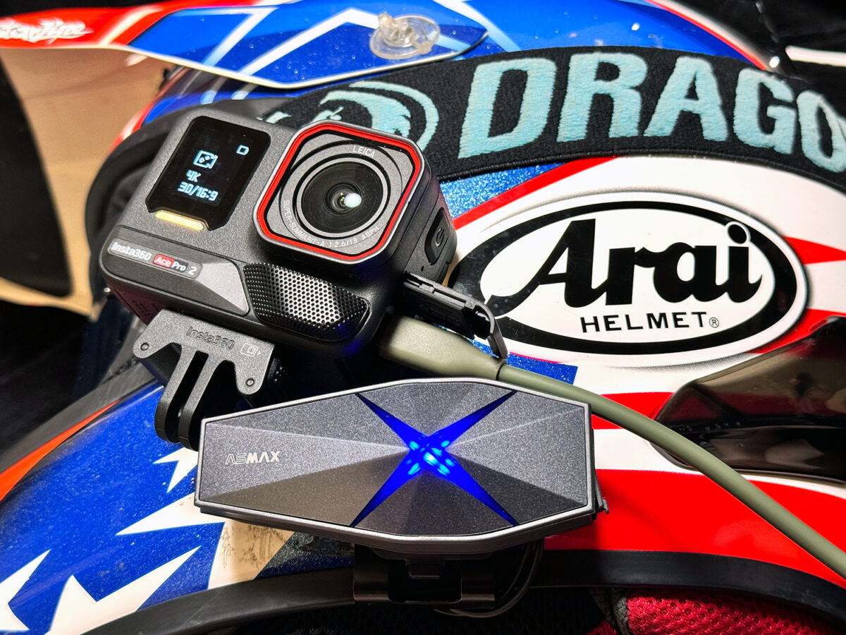 ASMAX F1 Proはアクションカムとの連携にも対応しているので、ツーリング中のインカムでの仲間との会話をそのまま録画+音声で記録できる。