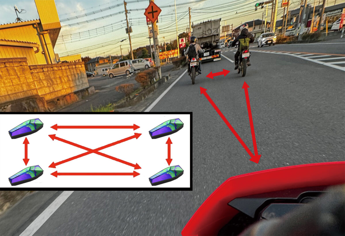 「先に行きたい/後ろに下がりたいけど接続が不安定になる」といった縛りが一切ない。これは地味に「みんなが楽しめるマスツーリング」の肝に関わるポイント!