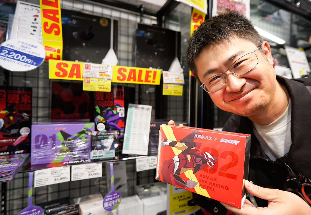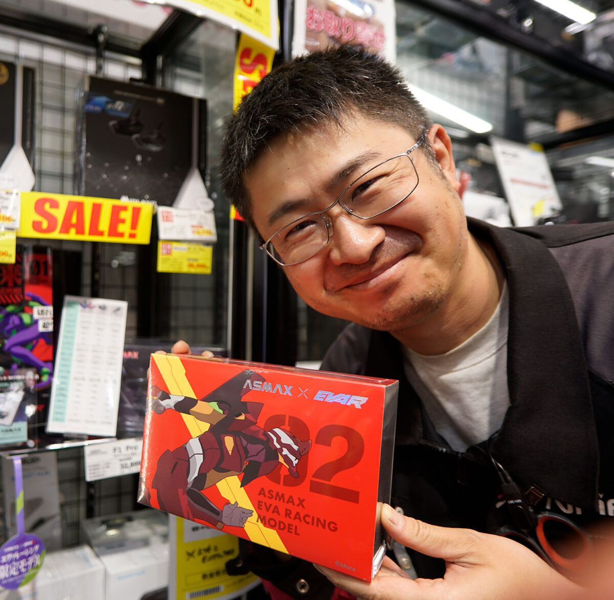 ASMAXブランドは日本上陸から日が浅いので新規導入は難しいところでしたが、エヴァンゲリオンとのコラボモデルであることが導入の大きな決め手のひとつでした。当店ではエヴァコラボのチェーンなども展開しており親和性が高かったです。
